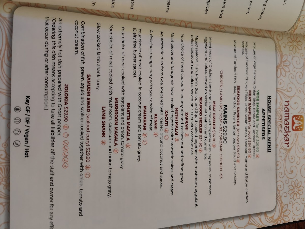Namaskar Indian Restaurant offers a delightful array of authentic Indian dishes, combining traditional flavors with fresh, high-quality ingredients. The menu features a variety of rich and aromatic options, including standout dishes like Banjara Tikka and Dal Makhani. The Banjara Tikka, with its tender marinated chicken, is grilled to perfection, offering a smoky, flavorful experience that is a crowd favorite. On the other hand, the Dal Makhani stands out for its creamy texture and depth of flavor, making it a comforting dish that pairs wonderfully with freshly baked naan or steamed rice. Each dish is expertly crafted, with spices carefully balanced to create a true taste of India. Whether you're craving a hearty curry, a sizzling tandoori dish, or a lighter vegetarian option, Namaskar Indian Restaurant provides a satisfying culinary experience for all.